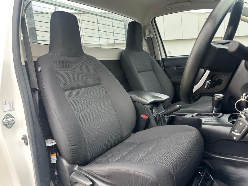 Inside, the Hilux SR offers a comfortable and functional cabin with modern features including air conditioning, Bluetooth connectivity, and intuitive controls, making long days on the road more manageable.